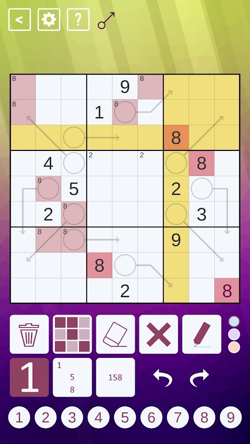 数独箭带体验十分益智的数独类游戏,游戏玩法就和普通的数独玩法一样,玩家要找到其中的规律,然后将数字全部都填进去,但是这款游戏难度加大了,你必须要把箭头对应的数字也填写正确哦。