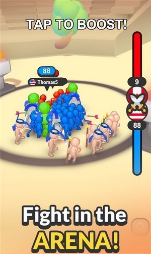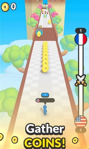 顽疾进入到PVP战斗跑酷3D之后可以与各个国家的玩家组队开启新一轮的游戏挑战!玩家需要控制己方士兵左右移动,以召集途中更多的士兵,收集更多的金币,同时还要躲避危险障碍物,消灭阻挡你的士兵,遇到商店后可以消耗金币购买士兵,到达PVP战斗跑酷3D的终点后,会与对向来的对手对战,当己方士兵人数大于地方的时候才能获得胜利!