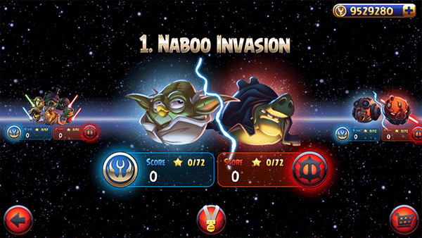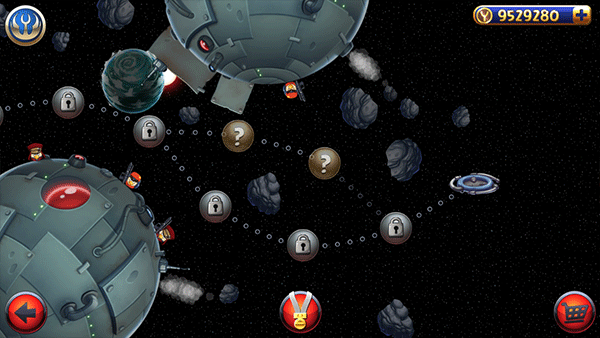3. 物理弹射与策略解谜结合:游戏保留经典弹弓发射机制,但加入动态弹道路径提示与技能触发系统。玩家需精准计算发射角度与力度,同时利用场景中的木块、钢架、炸药桶等物体制造连锁反应。部分关卡需在飞行中点击屏幕触发技能(如光剑挥砍、原力爆发),增加操作维度与策略深度。