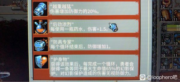 天赋方面,护身物是战士天赋最后的荣光,必选,这个套路就是靠高额血量加护身物约等于两条命,药水和越重越勇作为提升后期输出的手段也尽量选