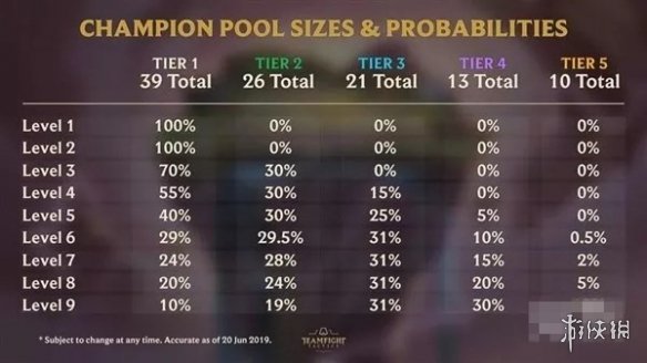 这里给大家带来一组数据,六级对比五级4费英雄的刷新几率会从10%提升到3%,5费英雄也会从0提升到0.5%。