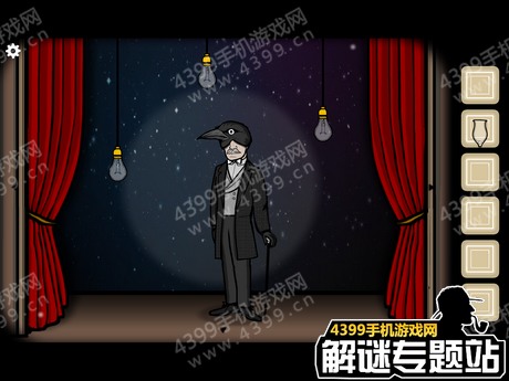 1、上一个剧目谢幕后,再点开出现一个带着乌鸦面具的男士,根据他右手伸出手指的数量,点击相应标号的灯,自左至右是1、2、3号;