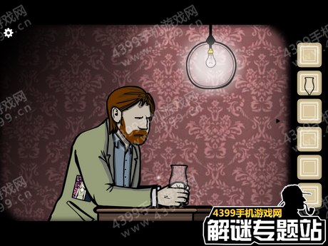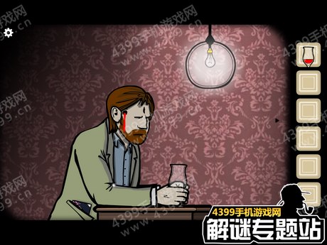 7、点击喝酒的男士,先回收空的鸡尾酒杯,然后给他装有酒的酒杯,多次点击他,他的额头开始出血,用空的鸡尾酒杯收集留下的血;