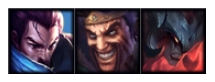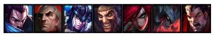 英雄分别为:诺手、卡特、德莱文、乌鸦、剑魔、亚索、猪妹。