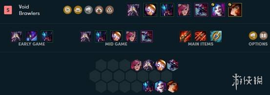 这个阵容的优势是走斗士的阵容的坦度非常强,同时后排的枪手输出的能力也非常恐怖,而虚空的真实伤害也非常恐怖,但是劣势就是高费卡相对多合成并非平滑,过度较难。