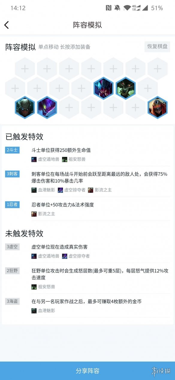 缺点:需要前期尽量打连胜,因为需要上9人口才能完成最终阵容,中期需要D出大虫子,不然后面不好打。