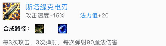 俗称电刀,每三次攻击就会进行一次溅射伤害,作用于3个额外目标。原先是4个,不过遭到了拳头无情的削弱。
