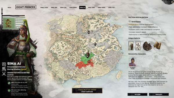 司马乂身为长沙王,起始位置距离都城较远,但地理位置很好,长江将为其提供天然的防御,但由于南方地形缘故,玩家想要用他来进行扩张还是有一定难度的。