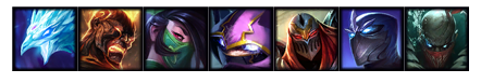 英雄分别为:派克、慎、劫、凯南、阿卡丽、火男、冰鸟。