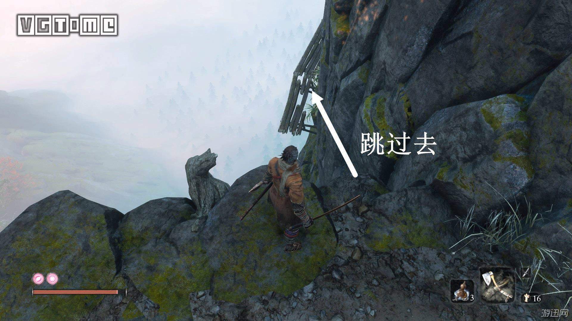 然后,从下图位置跳下去,沿图所示,一路前进。