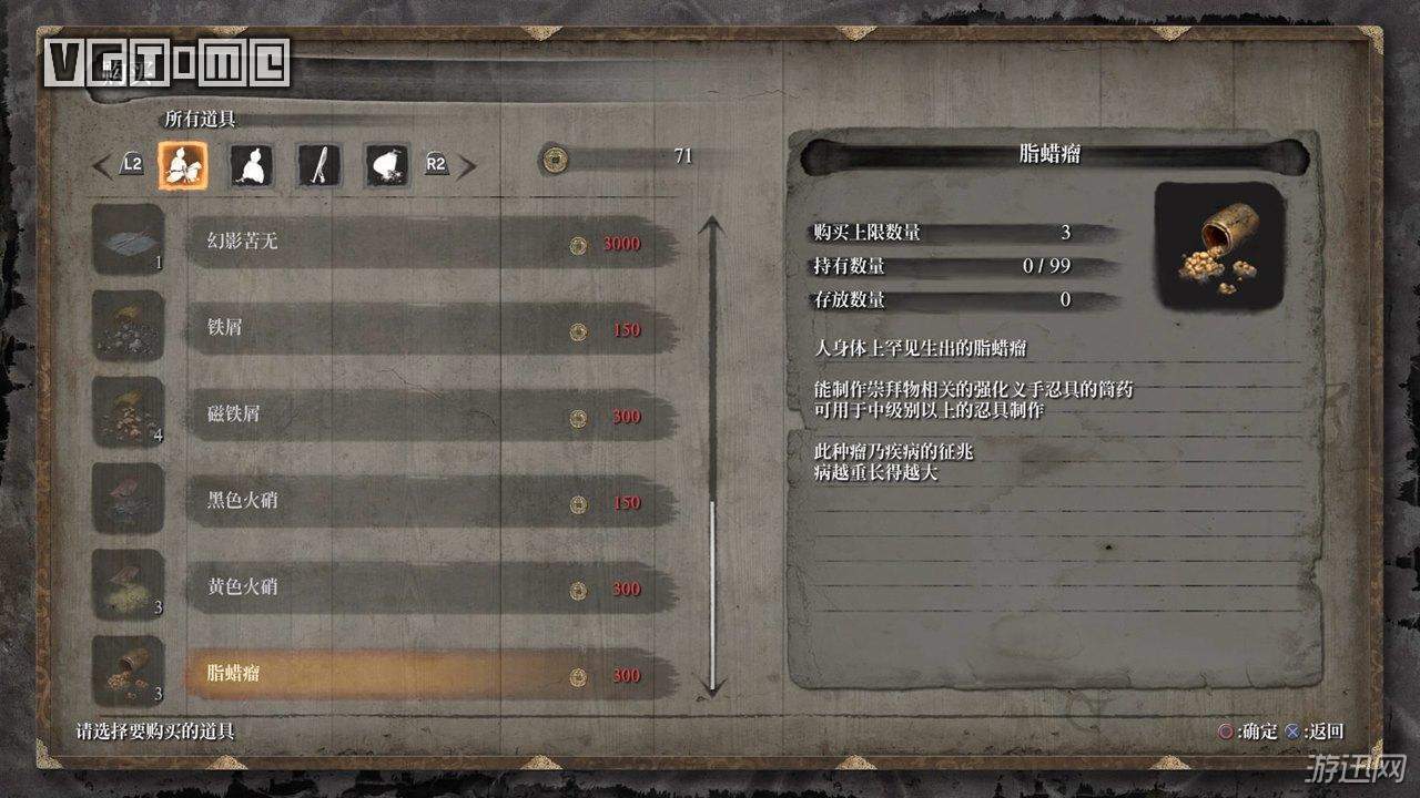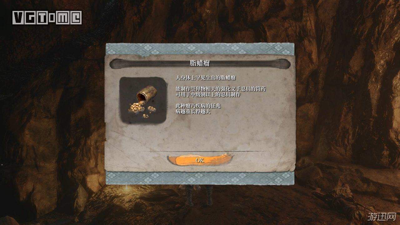 回到地牢,太郎和尚已经被送去做实验了(太惨了),和施术师对话,获得「脂蜡瘤」,用于升级中级以上的忍具。