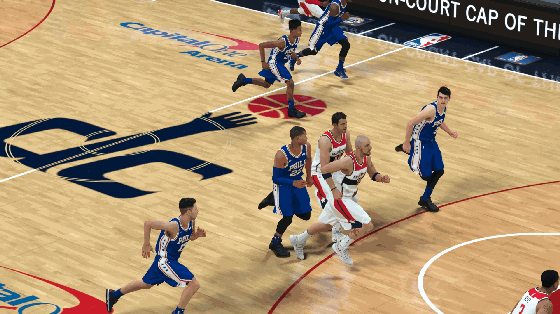 “出界,出界,还是出界”,这一代的空中接力明显成功率被调低了,2K17以前的版本,只要我方接球球员跑到篮下,距离对方防守球员有50cm左右,都可以顺利接球。可是2K18的空中接力,要求更严苛了。