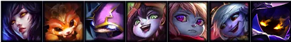 英雄分别为:狐狸、小炮、波比、小法师、纳尔、璐璐、凯南。