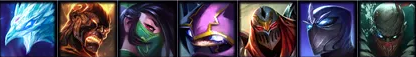 英雄分别为:派克、慎、劫、凯南、阿卡丽、火男、冰鸟。