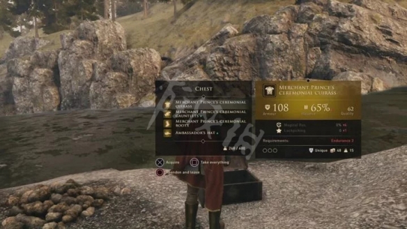你会发现水面上方的箱子,如果你有三级开锁技能或者钥匙,打开它。