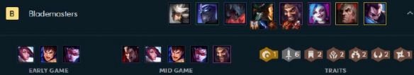 羁绊:1浪人&6剑士&2帝国&2海克斯科技&2枪手&2恶魔&1忍者