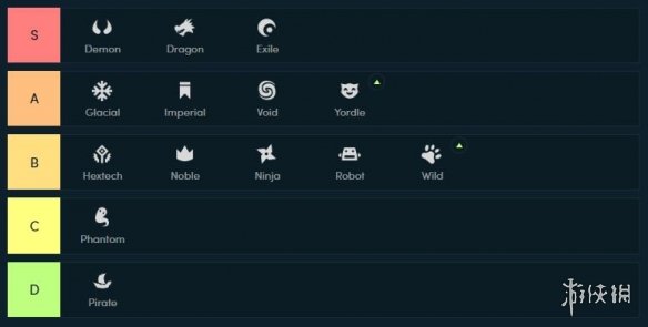 可以看到,恶魔、龙以及浪人占据了S级的位置。比起只有亚索一个的浪人种族一般只能作为挂件,恶魔和龙可以出现在更多的阵容当中。