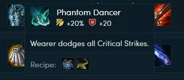 可以针对刺客的几个办法里,除了特定的阵容以外(约德尔人?)就只剩下幻影之舞这件装备了100%闪避暴击,可以让装备了幻影之舞的英雄避免被对方的英雄一刀暴死完美克制刺客。