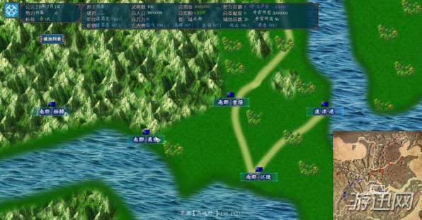 6、将鼠标移动到城池上面时,会显示该城池的一些信息:耐久、统治、军队、兵役。