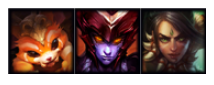 沃里克、奈德丽、阿狸、纳尔可以组成4狂野,而奈德丽、纳尔、希瓦娜可以组成三换形师,同时希瓦娜龙王可以组成双龙,阿狸、莫甘娜、龙王可以组成三法师。
