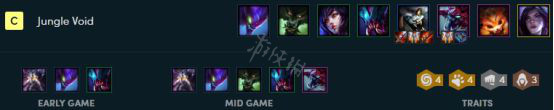 虚空斗狂野的阵容是新出的一种打法,狂野能获得全队的攻速加成,这个阵容可以针对约德尔人的阵容,狂野的羁绊能够无视对手的闪避强行造成输出的效果,这个虚空斗四狂野简直就是约德尔人的阵容的天敌,这个阵容的输出、爆发的能力还是非常强劲的一个点。