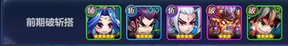 阵容组成:前期:甘宁、牛头、杨戬、宫本、大乔 分别对应 【破】、【破】、【斩】、【斩】、【辅】 中期:小乔、牛头、杨戬、宫本、貂蝉 分别对应 【破】、【破】、【斩】、【斩】、【辅】 后期:小乔、孟获、杨戬、宫本、于吉 分别对应 【破】、【破】、【斩】、【斩】、【斩】