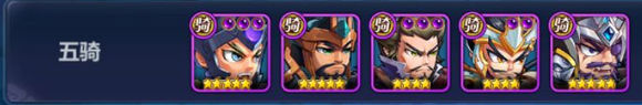 阵容组成:曹操、张辽、于禁、夏侯渊、夏侯淳分别对应【辅助】、【单体爆发】、【单体爆发】、【群攻】、【肉盾】 阵容优点:副本推图爽 阵容成型快 竞技场爆发力强 五骑列阵 四光环加持,相当于人均多4件神兵 (攻击 防御 暴击 闪避)