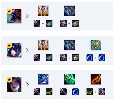 这套阵容合成平滑成型只要7口人,有输出有防御,如果卡莎拿不到还可以转暗帝骑士流。