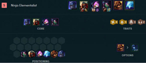 刺客的阵容在近期版本中的表现也非常突出,而忍者的阵容在9.19版本得到了一定的增强,所以四忍者三刺客的阵容成为了版本的S级阵容,这个阵容的优点非常的突出就是仅仅只需要六人口就算成型,如果后续开出七八人口以后就可以再考虑挂件,看情况拿牌。