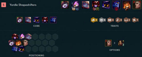 约德尔人的阵容在9.19版本的表现非常突出,新版的装备连指拳套让万物皆可约德尔人,实用性非常高,新版的约德尔人的阵容一般会给到龙女连指拳套让其变成约德尔人然后配合龙buff的魔免能进入近乎无敌的一种状态,6约德尔人换形在现在版本已经称王称霸。