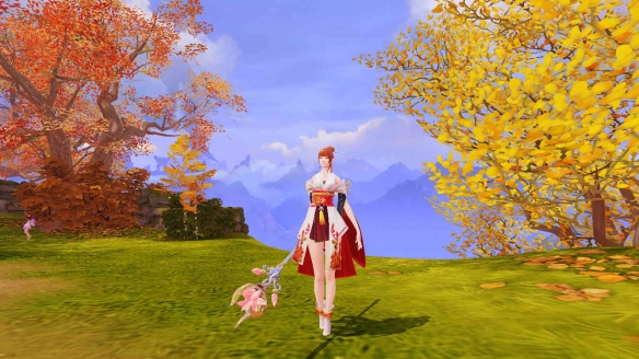 快抓住冬日前的温暖,《天下》手游短裙出街预定!本月返场的“秋华绚烂”女装,样式简洁而不乏优雅。素净的白色小立领敞口上衣,却选择搭配了一条格外鲜艳的金红色复古腰封,瞬间让你在人群中脱颖而出,令人印象深刻。而短裙+短靴的设计,则在视觉上拉长了双腿长度,让你更显纤细优美!裙摆下方绚烂繁复的金、红两色花朵纹饰也同样与全身大面积的留白形成鲜明对比,仿佛一首华丽乐曲无与伦比的高潮与完美结尾,可谓相得益彰,真正担得起“秋华绚烂”四个字。