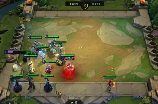 1费卡(铁男),2费卡(布隆,丽桑卓),3费卡(寒冰,熊),4费卡(猪女,千珏),5费卡,凤凰。八人口。若是更欧皇,第九人口上一个卡莎。