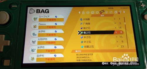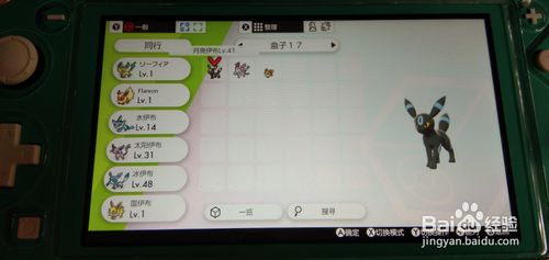 按“X”进入功能界面,在功能界面中选择“宝可梦”进入盒子,将“伊布”放入背包中。