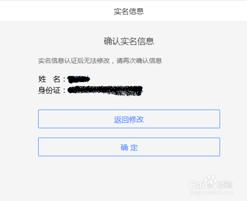 验证完毕后就会进入到实名信息设置页面,在页面上输入我们的姓名和身份证号码,然后仔细核对自己的实名信息。