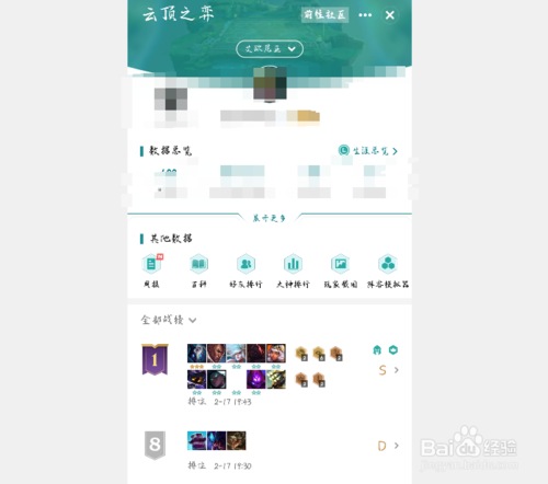 6.点击上方的“云顶之弈”,进入页面就能看到战绩了。