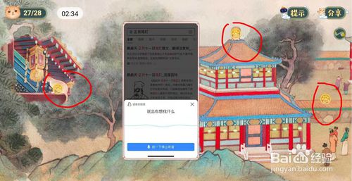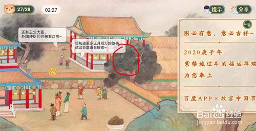 宫猫过大年找28只猫攻略图解,“宫猫过大年”是百度app推出一个春节活动,活动要求在5分钟内找到宫内28只猫,看到大黄猫,用手指点下它即视为找到。一起来看下28只猫所隐藏的位置吧。