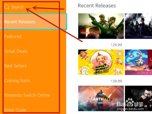 主界面点击【Eshop】进入商店,点击【搜索】
