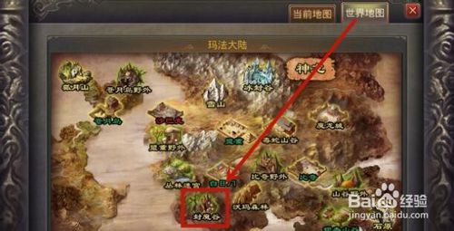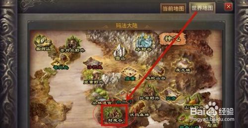 然后,选择:世界地图,这时就能看到世界地图中的“封魔谷”