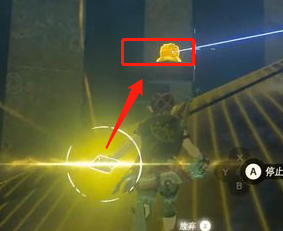 进入神庙后玩家可以看到神庙内有一堆巨石滚落的斜坡 ,在上面有个激光发射器,这个时候玩家可以使用禁止器将其禁止。