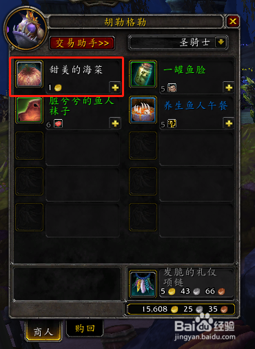 3、“甜美的海菜”是由小鱼人胡勒格勒出售的,每个售价1金币。