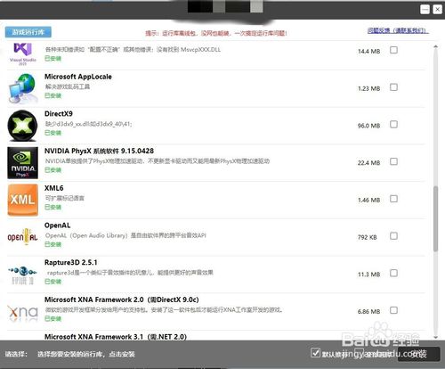 4.常用运行库没安装,例如DirectX、VC++2005、VC++2016等,百度搜“常用运行库”下载安装。