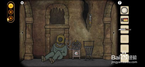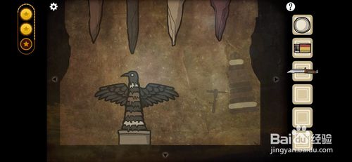 退到一开始的那个地方。点击人正上方的洞穴,根据洞穴内右侧的提示对可以滑动的底座进行操作,石柱上的水滴滴到底座上即可累加一块该石柱颜色的石头。颜色顺序为黑—白—黑—棕—黑—黑—棕—棕—黑—白—黑,对应的石柱顺序是2—3—2—1—2—2—1—1—2—3—2。第四个石柱是用来消除错误的,如果出现错误,将底座移到第四个石柱下即可消除。