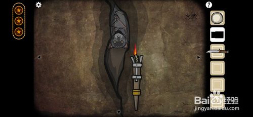 退到一开始的那个地方。点击右侧上方的火把,用火柴点亮火把。