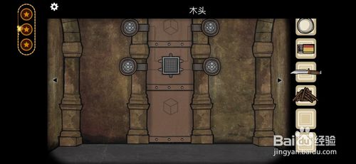 退出后将画面左移,进入一个有一道门的画面,点击画面右下方,获得一堆柴火。