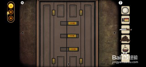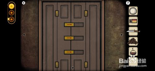 退出,点击大柜子,将柜子上的三个带箭头的滑块都向右滑,滑到头,打开柜子