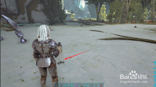 5.之后拿木棒把双脊龙打晕,是打晕不是打死,打晕之后把肉放到双脊龙背包
