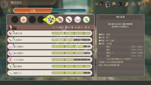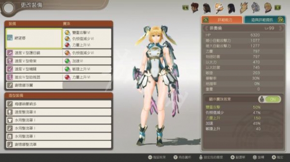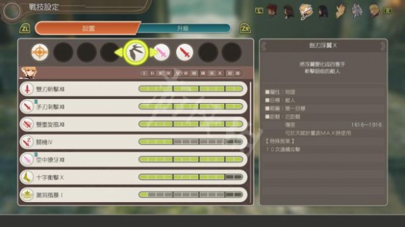 力量上升VI、加速VI、双重攻击VI、移动速度。