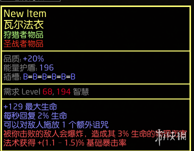 以上方法可以轻松做出有 "被你击败的敌人会爆炸,造成3%的物理伤害" 词缀的圣战衣服。